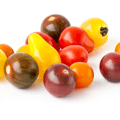 Kerstomaten gemengd, rood, geel, groen, oranje. Heel decoratief.