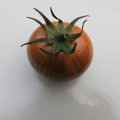 originele kerstomaat, zwart met groene strepen. Zoet vruchtvlees bij rijpheid, aromatisch en niet meelachtig.